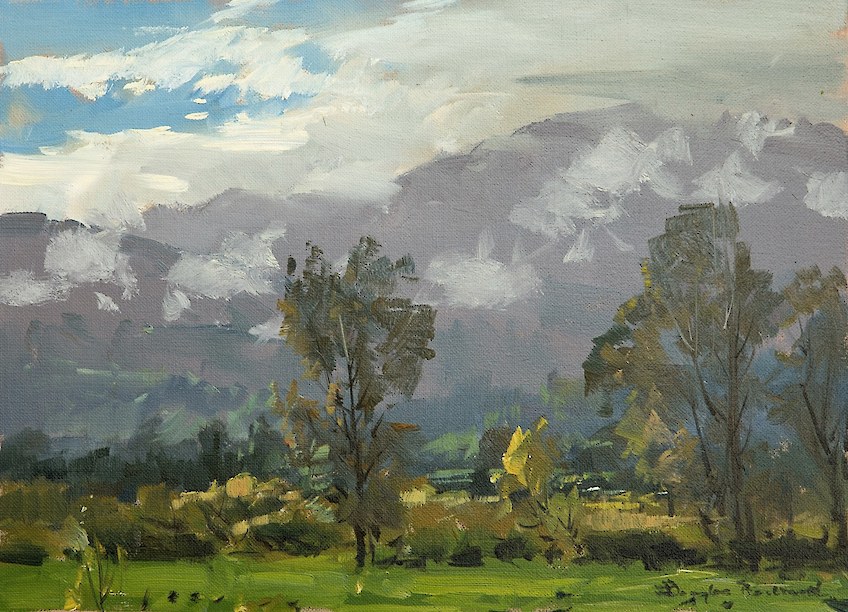 The exhibition consists of paintings inherited directly from Douglas by his daughter Jenny. It includes a number of works from her private collection which are not for sale, but over twenty works that are for sale. The compositions are mainly of Southland and Central Otago landscapes, including a number of Riverton.